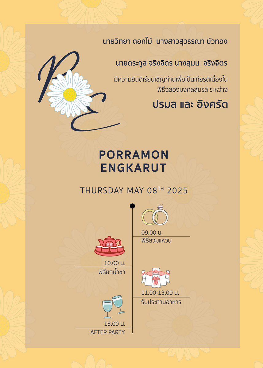 ออกแบบและผลิตการ์ดแต่งงาน - ซองใส่การ์ด - ของชำร่วยราคาย่อมเยา
