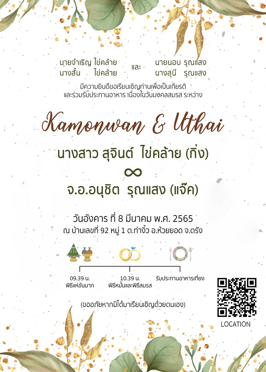 ออกแบบและผลิตการ์ดแต่งงาน - ซองใส่การ์ด - ของชำร่วยราคาย่อมเยา