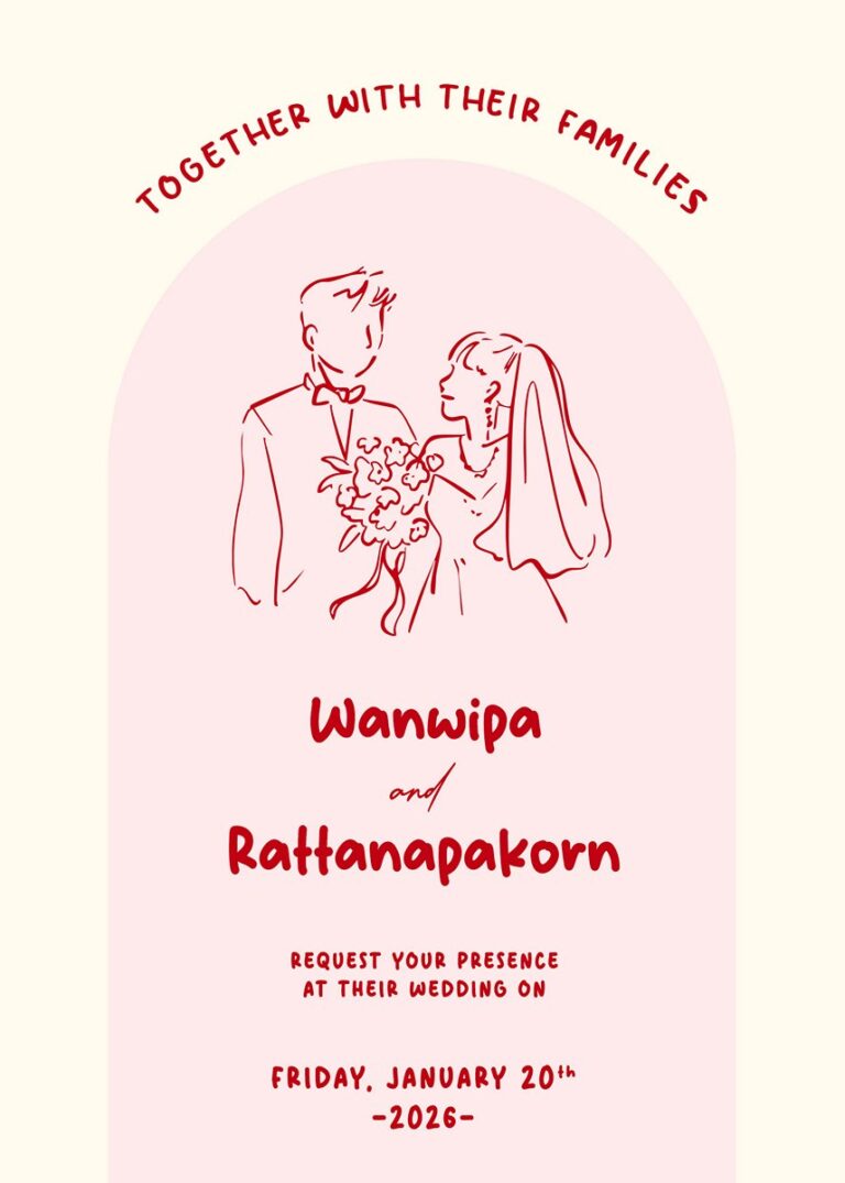 ตัวอย่างการ์ดแต่งงานจากร้าน Samadul Studio เราออกแบบตามความต้องการของลูกค้า โดยเน้นการจัดวางรูปแบบต่าง ๆ อย่างลงตัวที่สุดเพราะเราทราบว่าทุก ๆ อย่างที่ปรากฎบนการ์ดของคุณมีความสำคัญเสมอ เราจึงใสใจในทุก ๆ รายละเอียด เพื่อให้คุณส่งการ์ดเชิญที่สวยงามและสมบูรณ์แบบที่สุดไปยังผู้มีเกียรติทุกท่าน