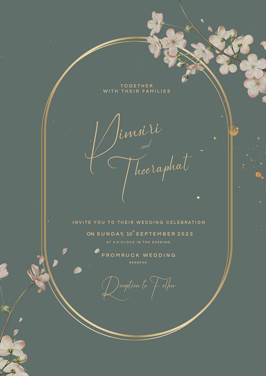 ตัวอย่างการ์ดแต่งงานจากร้าน Samadul Studio เราออกแบบตามความต้องการของลูกค้า โดยเน้นการจัดวางรูปแบบต่าง ๆ อย่างลงตัวที่สุดเพราะเราทราบว่าทุก ๆ อย่างที่ปรากฎบนการ์ดของคุณมีความสำคัญเสมอ เราจึงใสใจในทุก ๆ รายละเอียด เพื่อให้คุณส่งการ์ดเชิญที่สวยงามและสมบูรณ์แบบที่สุดไปยังผู้มีเกียรติทุกท่าน