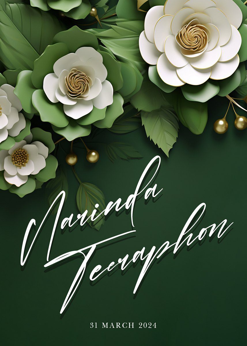 ตัวอย่างการ์ดแต่งงานจากร้าน Samadul Studio เราออกแบบตามความต้องการของลูกค้า โดยเน้นการจัดวางรูปแบบต่าง ๆ อย่างลงตัวที่สุดเพราะเราทราบว่าทุก ๆ อย่างที่ปรากฎบนการ์ดของคุณมีความสำคัญเสมอ เราจึงใสใจในทุก ๆ รายละเอียด เพื่อให้คุณส่งการ์ดเชิญที่สวยงามและสมบูรณ์แบบที่สุดไปยังผู้มีเกียรติทุกท่าน