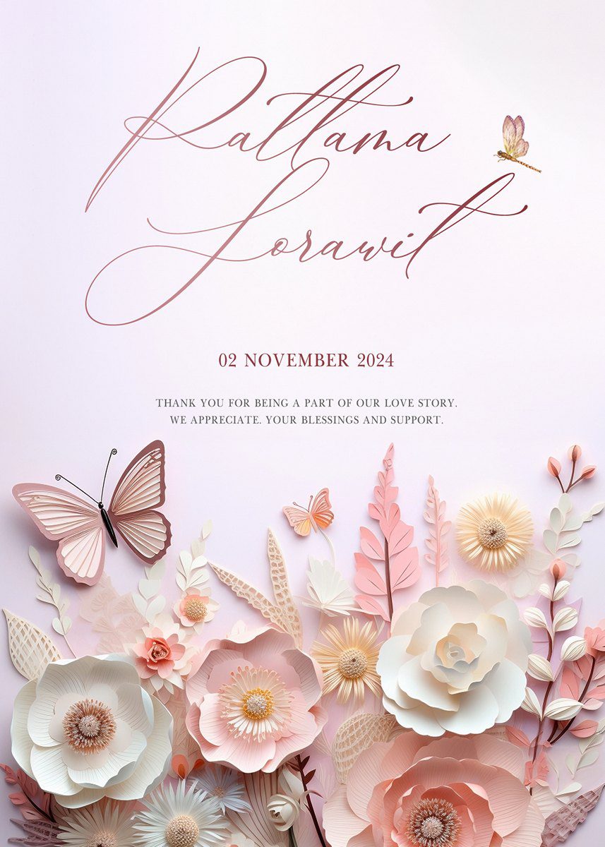 ตัวอย่างการ์ดแต่งงานจากร้าน Samadul Studio เราออกแบบตามความต้องการของลูกค้า โดยเน้นการจัดวางรูปแบบต่าง ๆ อย่างลงตัวที่สุดเพราะเราทราบว่าทุก ๆ อย่างที่ปรากฎบนการ์ดของคุณมีความสำคัญเสมอ เราจึงใสใจในทุก ๆ รายละเอียด เพื่อให้คุณส่งการ์ดเชิญที่สวยงามและสมบูรณ์แบบที่สุดไปยังผู้มีเกียรติทุกท่าน